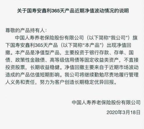 财友们纷纷将矛头指向了支付宝及基金方。巨大的舆论压力也迫使基金管理方"中国人寿养老保险股份有限公司"不得不紧急发布说明函。但是我们也从这次事件中可以看出,中国的理财市场理念仍旧是落后的,群众的经济金融成熟度还远远不够。