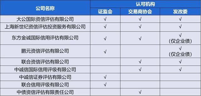 我国主要有九家信用评级机构,不同评级机构的市场认可度也不同。大公国际、新世纪、东方金诚这三家提供的评级报告,受到市场的广泛认同。